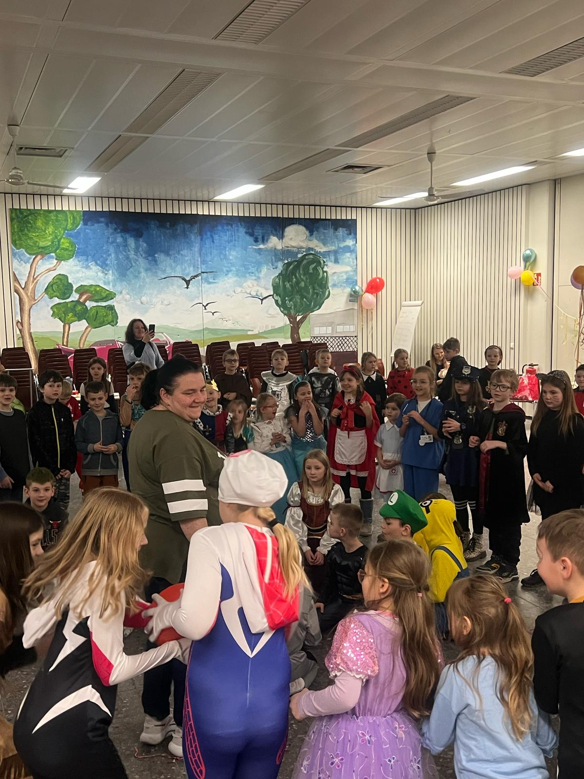 W sobotę 1 marca w naszej szkole odbyła się zabawa karnawałowa klas I – III. W tym dniu gościliśmy Wróżki, Księżniczki, Piratów, Policjantów oraz inne znane postacie z bajek i baśni dla dzieci. Rodzice pięknie przyozdobili salę, zajęli się również oprawą muzyczną i przygotowali dla uczniów pyszny poczęstunek. Panie z edukacji wczesnoszkolnej poprzez liczne gry i aktywności starały się zapoznać uczniów z tradycją zabawy karnawałowej, która rozwija nie tylko aktywność ruchową, muzyczną i artystyczną ale również jest doskonałym ,,narzędziem” do kształtowania umiejętności wspólnej zabawy, współpracy uczniów podczas różnych zadań i rozwija pozytywne relacje w grupach. Na bal zaprosiliśmy także dzieci z oddziału dziecięcego. Zrobiliśmy duże koło i zaczęliśmy tańczyć w rytm muzyki, potem jeździliśmy pociągiem, bawiliśmy się w ,,Baloniku nasz Malutki”, ,,Grę Kolorów” i wiele, wiele innych gier i zabaw. W tym dniu na twarzach wszystkich, nie tylko dzieci gościł piękny, promienny uśmiech…