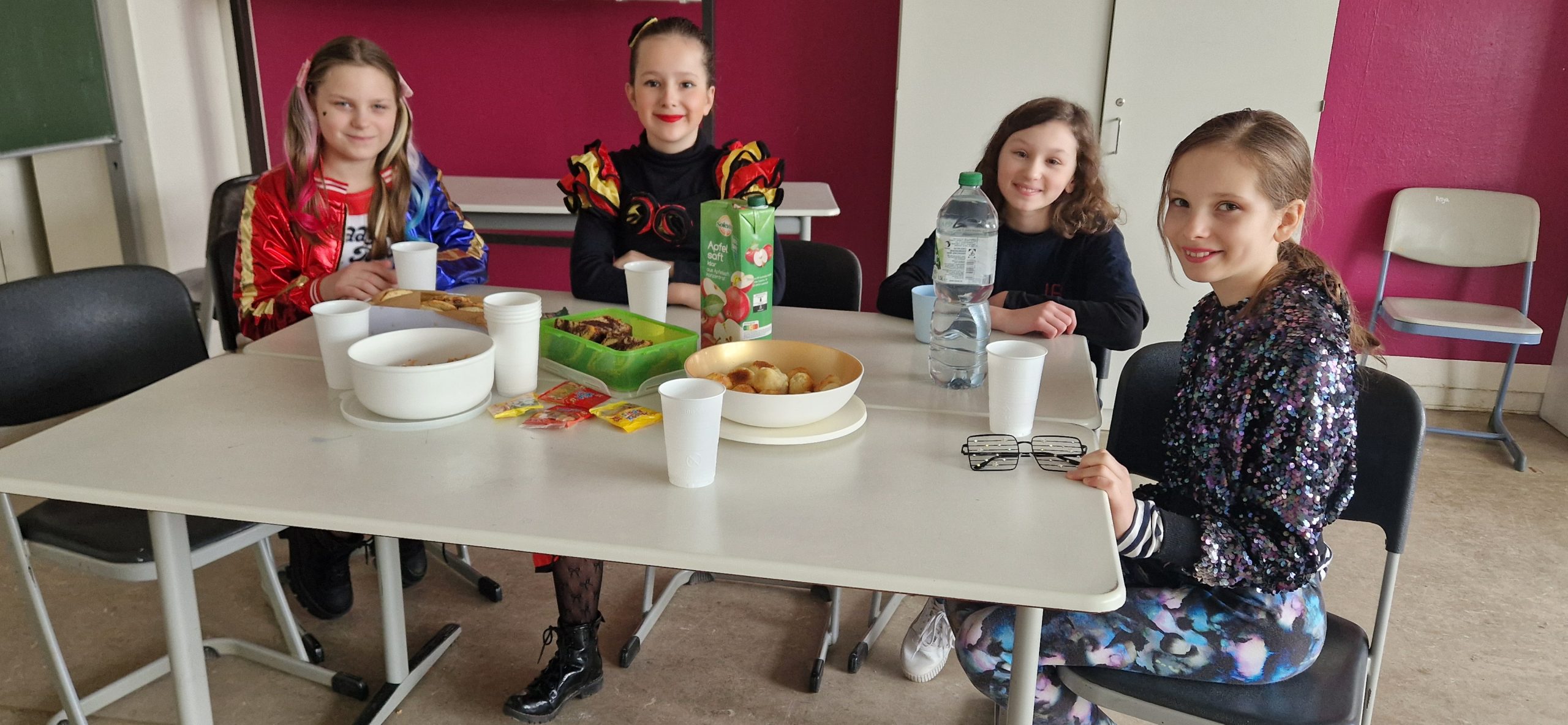Również starsze klasy, wspólnie z opiekunami, zorganizowały w swoich salach poczęstunek inspirowany tradycjami karnawałowymi. Przy wspólnym stole była okazja nie tylko do degustacji smakołyków, ale także do rozmów o zwyczajach karnawałowych w Polsce i na świecie.