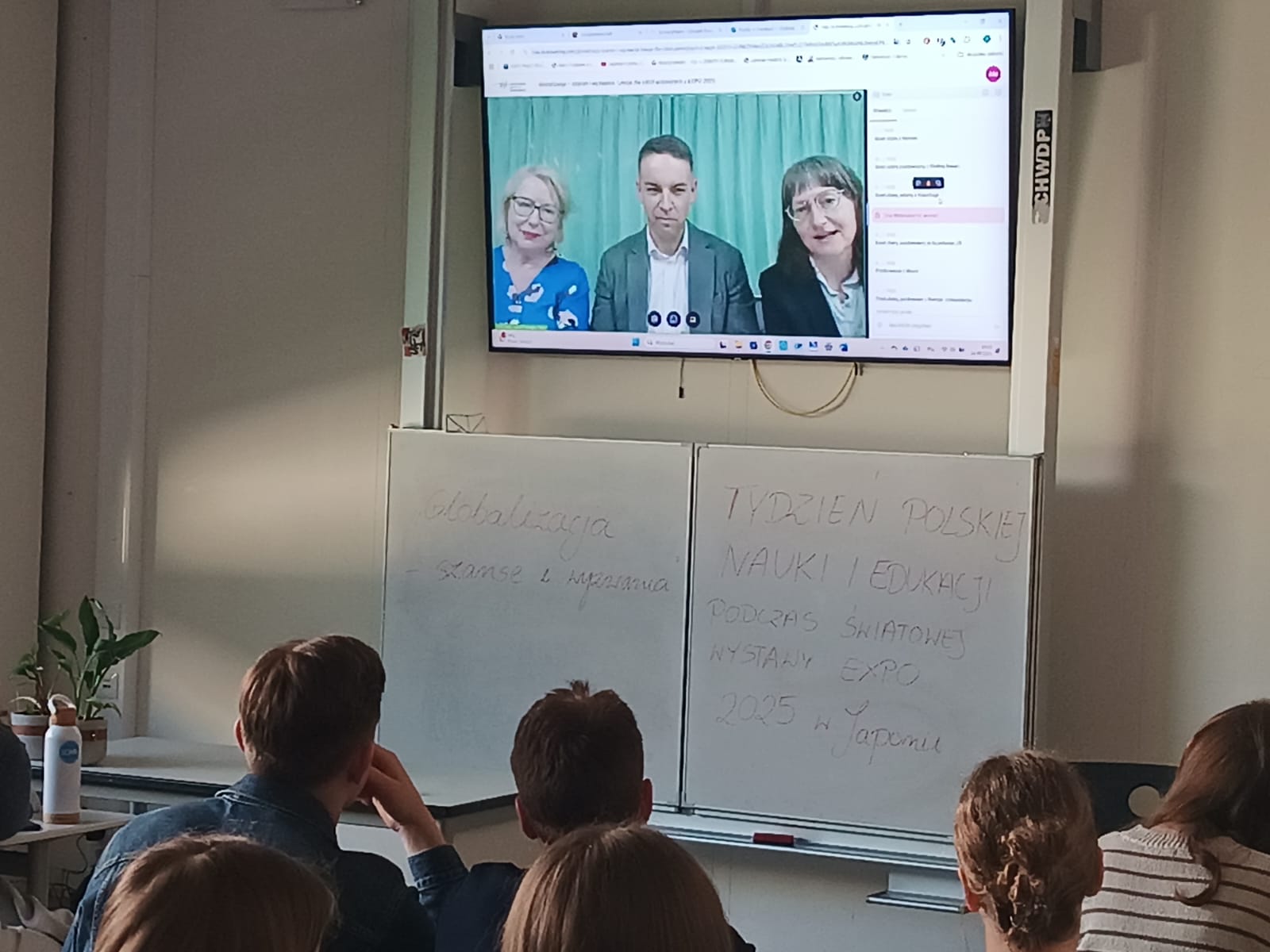 26 kwietnia uczniowie klas licealnych naszej szkoły mieli zaszczyt uczestniczyć w wydarzeniach organizowanych w ramach Tygodnia Polskiej Nauki i Edukacji podczas Światowej Wystawy EXPO 2025 w Japonii. W programie znalazł się inspirujący wykład pt. „Globalizacja: szanse i wyzwania”, prowadzony przez prof. Witolda Orłowskiego – wybitnego polskiego ekonomistę oraz autora powieści ekonomicznych dla młodzieży.